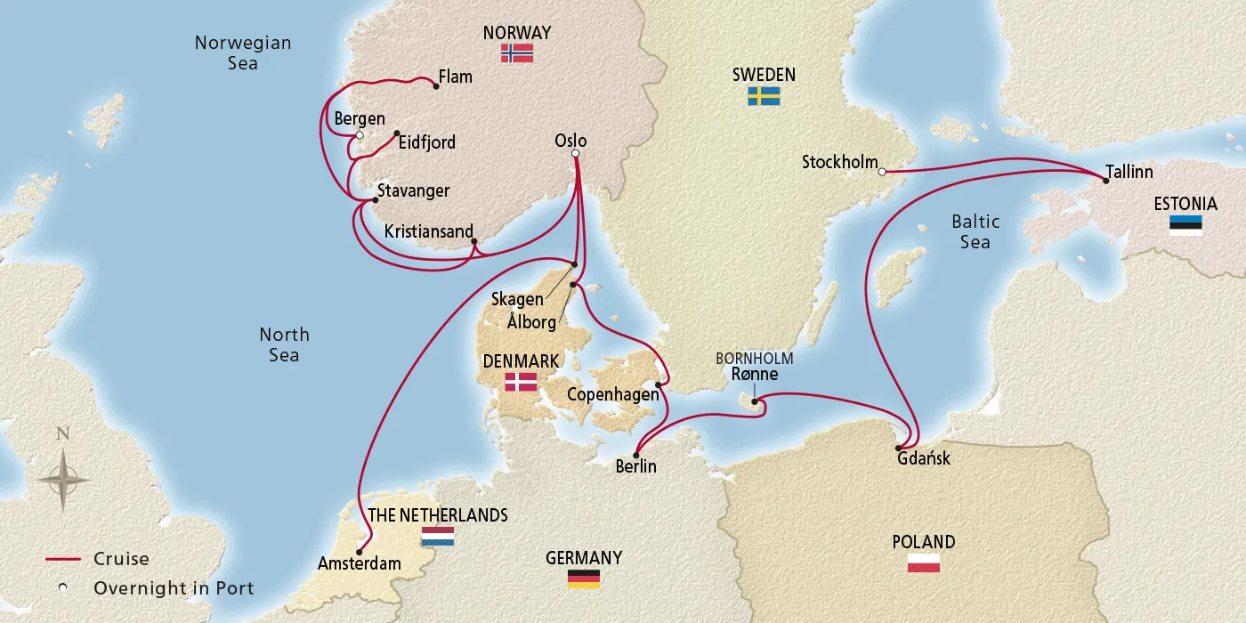 Journey through the Baltic Sea, follow ancient trade routes of the Viking Age and call at prominent cities of the Hanseatic League. Explore the UNESCO-listed old town of Tallinn and immerse yourself in Scandinavia’s rich cultural legacy with overnights in charming Copenhagen, vibrant Oslo and picturesque Bergen. Venture to southern Norway to marvel at the pristine fjords and snow-capped mountains of the Viking homelands during this extended voyage.