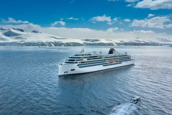 February 20, 2025 — This new offering for Viking in 2025 and 2026 will take adventurous travelers on a once-in-a-lifetime journey from the Earth's far north in Greenland all the way to the South Pole in Antarctica. The 87-day cruise sails aboard Viking's 378-guest Polar Class 6 expedition vessels, Viking Octantis (in 2025) and Viking Polaris (in 2026). It features ports of call in 12 countries. Guests along for the extended sailing will explore the remote beauty of Greenland and the icy wilderness areas of the Canadian High Arctic – all the way south to the Chilean fjords and the otherworldly landscapes and surreal beauty of Antarctica.